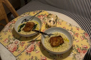 Creamy Lemon Risotto with Goat Cheese + Crispy Chicken Thighs
